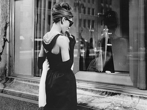 霍莉身穿黑色晚禮服,獨(dú)自佇立在蒂凡尼珠寶店前,臉頰緊貼著櫥窗,邊吃著手里的面包,邊以羨慕的眼光注視著櫥窗中的一切……這是奧黛麗.赫本在電影《蒂凡尼的早餐》中經(jīng)典的一幕。