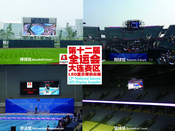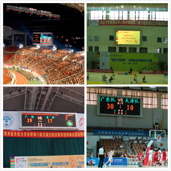 (依次為廣州大學(xué)城中心體育場(chǎng)、中山大學(xué)體育場(chǎng)、廣東外語外貿(mào)大學(xué)體育館、廣東工業(yè)大學(xué)體育館的LED顯示屏)