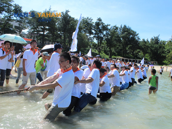 整齊的隊伍、統(tǒng)一的服裝、響亮的口號......我們的抵達打破了海島原有的平靜,海浪似乎因為我們的到來變得活潑起來了,也加入了我們的隊伍,為七大門派武林爭霸加油鼓勵。驕陽似火也抵擋不住同事們火辣辣的熱情,七大門派武林爭霸箭在弦上,一觸即發(fā)。