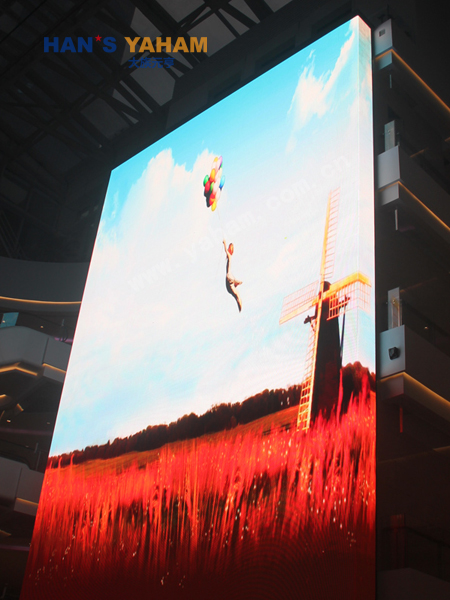 “飛流直下三千尺,疑是銀河落九天”,立體效果讓人身臨其境,巨幅顯示讓人嘆為觀止。該LED大屏幕位于廣州高德置地中庭,面積達(dá)402㎡,由元亨光電承制,像素間距10mm。南方都市報(bào)稱之為“6層樓高、12.6米寬的廣州城內(nèi)面積最大的至高端的LED電子屏設(shè)備”。