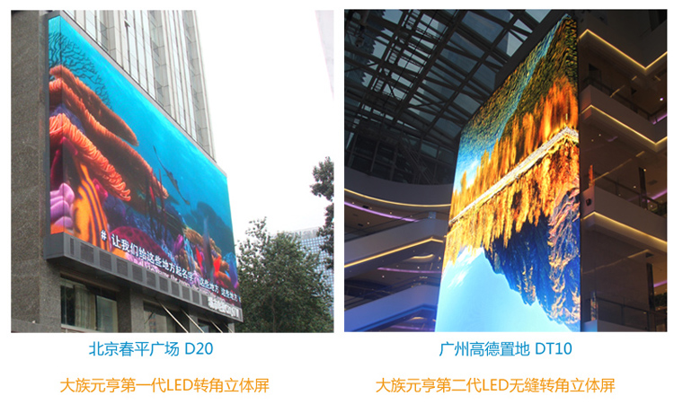 與元亨光電第一代LED轉(zhuǎn)角屏相比,第二代LED轉(zhuǎn)角屏成功實(shí)現(xiàn)了無(wú)縫拼接,畫(huà)質(zhì)顯示效果更加完美。90度無(wú)縫轉(zhuǎn)角是行業(yè)內(nèi)的重大難題,元亨光電首創(chuàng)轉(zhuǎn)角模組專利技術(shù),有效地消除LED顯示屏轉(zhuǎn)角處的“黑線”,實(shí)現(xiàn)轉(zhuǎn)角屏畫(huà)面顯示的連貫自然。