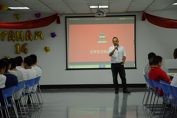 下午16點,盛大的宴會在公司培訓室隆重展開,公司董事長杜尚勇、副董事長王占明、副董事長張新慶、董事總裁鄺野及經(jīng)營部分的各位同事均神采奕奕,共同分享了元亨光電14周年的喜悅和精彩。