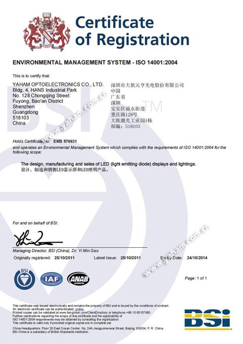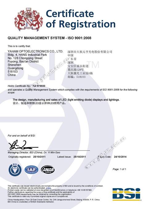 領(lǐng)先的LED應(yīng)用產(chǎn)品系統(tǒng)解決方案提供商元亨光電日前獲得全球頂級的的ISO認(rèn)證機(jī)構(gòu)BSI(英國標(biāo)準(zhǔn)協(xié)會)頒發(fā)的ISO9001:2008和ISO14001:2004認(rèn)證證書,這標(biāo)志著公司ISO標(biāo)準(zhǔn)升級工作圓滿完成,公司將從質(zhì)量預(yù)防、環(huán)境要求等方面以一個更高的標(biāo)準(zhǔn)來指導(dǎo)工作,產(chǎn)品質(zhì)量和服務(wù)水平也向著更高的目標(biāo)邁進(jìn)。