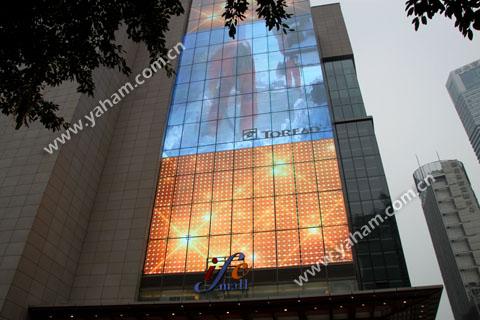 領(lǐng)先的LED顯示屏系統(tǒng)解決方案提供商元亨光電為重慶第一高樓——英利國(guó)際金融中心打造的一塊新型全彩LED格柵屏終于和觀眾亮相了,這塊大屏顯示面積達(dá)840平米,像素間距為31.25mm,采用輕薄的轉(zhuǎn)角結(jié)構(gòu),顯示屏藏于玻璃幕墻內(nèi),亮起來取得夢(mèng)幻般效果。