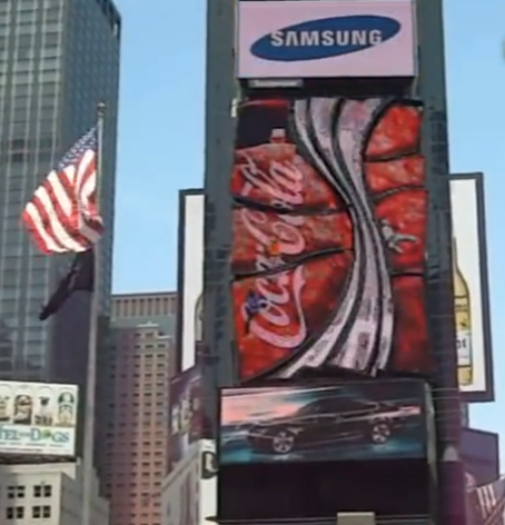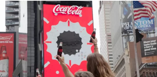 在2004年,可口可樂使用3D雕塑裝置,使用了32個LED屏幕播放了各種數(shù)字圖形,展示了紐約的風景和可口可樂在過去80年里的品牌形象。