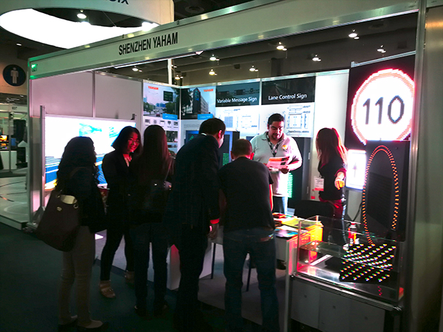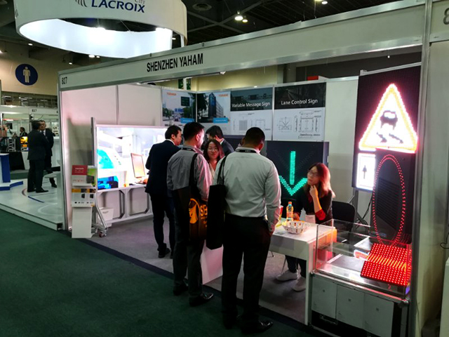 本次展會(huì)元亨光電攜帶的情報(bào)板OT20顯示屏、限速標(biāo)志、控制車道標(biāo)志、3.91mm顯示屏、YS顯示屏等產(chǎn)品,可廣泛應(yīng)用于高速可變信息標(biāo)志、城市可變信息標(biāo)志、單立柱限速標(biāo)志、地鐵站內(nèi)情報(bào)板、指示牌等領(lǐng)域,結(jié)合運(yùn)用了元亨光電最新的研發(fā)成果,現(xiàn)場(chǎng)進(jìn)行點(diǎn)亮演示,效果俱佳,引來眾多交通部項(xiàng)目、政策決策人及技術(shù)顧問、聯(lián)邦政府項(xiàng)目、政策決策人及技術(shù)顧問、公共交通項(xiàng)目部負(fù)責(zé)人(地鐵、巴士等)等領(lǐng)域觀眾駐足咨詢了解,現(xiàn)場(chǎng)火熱。