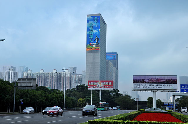 深圳大中華項(xiàng)目——安裝于2011年,顯示面積:1485.86㎡,是當(dāng)時(shí)國(guó)內(nèi)最大的戶外全天候廣告發(fā)布顯示屏。