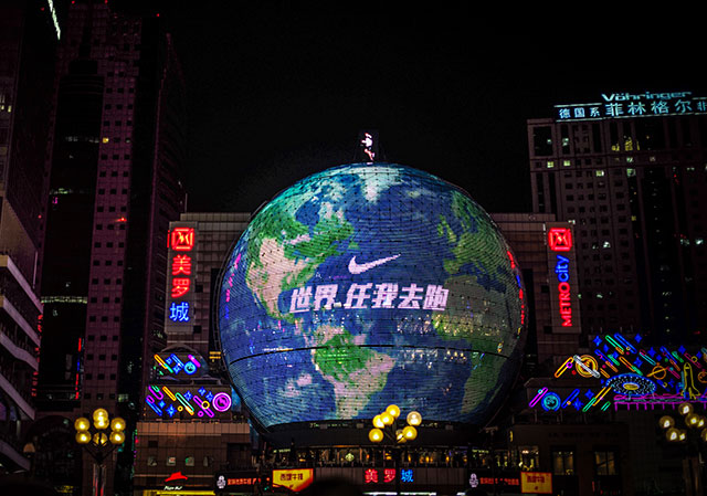 上海美羅城項(xiàng)目——安裝于2013年,世界首例大型玻璃球形建筑內(nèi)安裝LED顯示屏項(xiàng)目。
