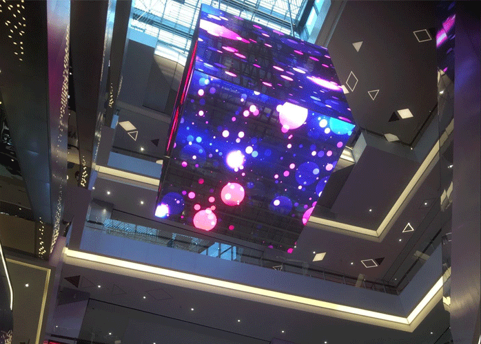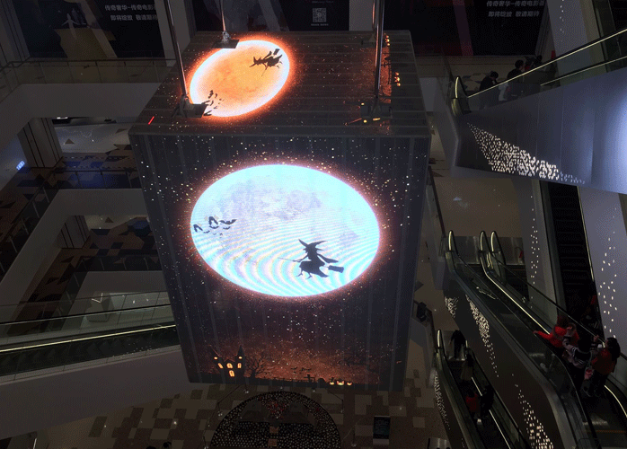 項(xiàng)目簡(jiǎn)介:位于北京合景魔方大廈的透明屏是一塊形狀為六面體魔方造型的異形屏,由于大廈的開(kāi)業(yè)時(shí)間早已定下,因此交期問(wèn)題成了最大的難題。為此,元亨光電工程人員在動(dòng)工前就嚴(yán)格制定了工作計(jì)劃,日夜趕工,確保項(xiàng)目按時(shí)完工。整屏位于商場(chǎng)中央,因此還特別做了升降設(shè)計(jì),以便后期維修更換。