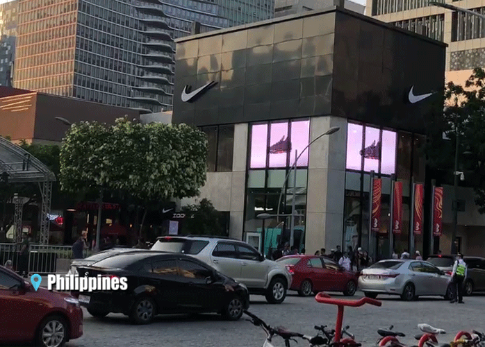 項(xiàng)目簡(jiǎn)介:該項(xiàng)目位于菲律賓Nike旗艦店,由于建筑本身帶有龍骨,常規(guī)箱體無(wú)法使箱體和窗戶(hù)緊密貼合,因此,元亨光電設(shè)計(jì)了兩種不同箱體,使安裝的透明屏與原建筑完美貼合。