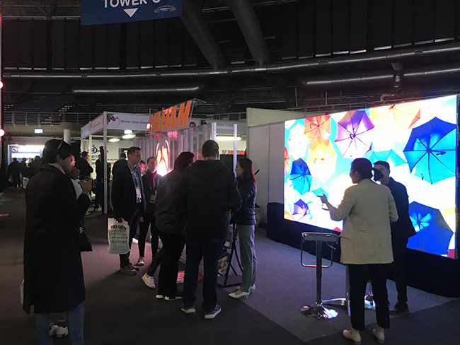 元亨光電展出的C0系列正發(fā)光透明屏,在保證產(chǎn)品通透性的同時(shí),確保畫面更清晰。打破常規(guī)的模組設(shè)計(jì)思維,內(nèi)嵌燈板PCB,避免了顯示屏向內(nèi)漏光,減少光污染。展會現(xiàn)場,海外銷售劉經(jīng)理在接受當(dāng)?shù)仉娨暸_采訪時(shí)表示,透明屏在非洲的展會上是一個(gè)全新的產(chǎn)品,隨著南非經(jīng)濟(jì)的發(fā)展,城市建設(shè)日趨完善,透明屏將會在南非這片熱土上大放異彩。
