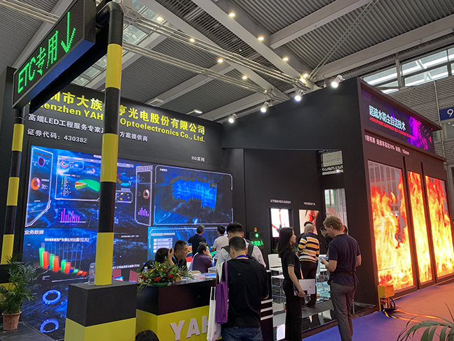 展位設(shè)計(jì)采用黑色主調(diào),輔以橙色,呈現(xiàn)低調(diào)務(wù)實(shí)開(kāi)放的企業(yè)形象。展位三面開(kāi)放,可最大限度地同時(shí)供多位觀展客戶(hù)近距離了解產(chǎn)品信息和體驗(yàn)顯示屏顯示性能。在LED交通屏領(lǐng)域頗有建樹(shù)元亨光電在本次展會(huì)上別出心裁地以ETC作為展位門(mén)頭,配合交通費(fèi)額顯示屏,為觀眾打造出身臨其境的道路交通場(chǎng)景。