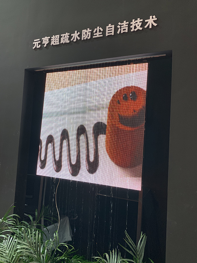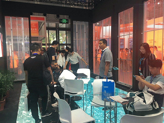 同時(shí),展位減少了木板墻體,改用元亨C系列透明屏,通透率高達(dá)70%的透明屏,兼顧采光以及內(nèi)容展示,播放畫(huà)面懸浮于屏幕之上,打造高端透明櫥窗效果,配以逼真的動(dòng)畫(huà)視屏,吸引往來(lái)觀眾紛紛駐足觀賞,不少?lài)?guó)外游客對(duì)元亨透明屏表示驚嘆。