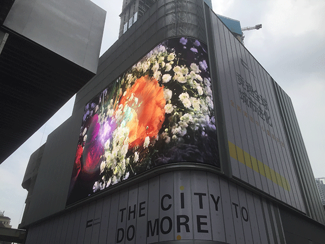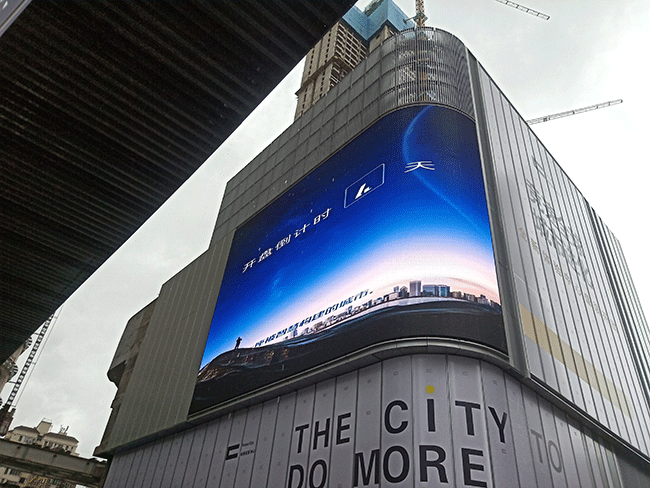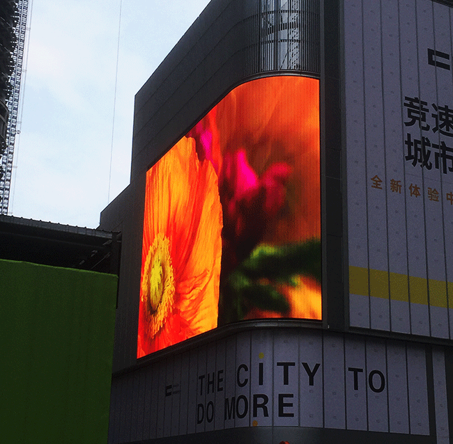 這塊巨型戶外顯示屏由元亨光電S系列產(chǎn)品打造而成,平面加弧面的設(shè)計(jì),弧面采用元亨光電獨(dú)創(chuàng)專利無縫轉(zhuǎn)角過渡技術(shù),使顯示屏完全貼合各種建筑角度,同時(shí)兼顧轉(zhuǎn)角處平滑無縫過渡,消除傳統(tǒng)拼接轉(zhuǎn)角出現(xiàn)的拼縫問題,完美呈現(xiàn)整屏立體式效果。