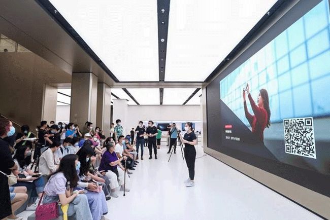 進入店內(nèi)一樓,不管是從產(chǎn)品展示區(qū),還是閑坐在中庭的步梯上,你都能看到元亨小間距大屏配合著不同的產(chǎn)品專區(qū)播放的高清視頻,為每一位客人打造全場景沉浸式體驗。移步到二樓,常規(guī)LED小間距大屏、小間距造型屏與智能家居、移動辦公、運動健康、智慧出行、影音娛樂等五大全生活智慧場景相互配合,讓人身臨其境,感受創(chuàng)新科技帶給生活的極致體驗。
