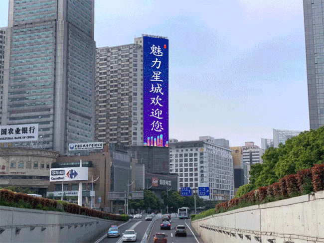 地處長沙CBD的芙蓉廣場(chǎng)上,元亨高達(dá)70米的廣告豎屏俯瞰整個(gè)長沙CBD,坐擁“全國地標(biāo)媒體最新力作”、“三湘第一豎屏”、“矗立高空站在傳播制高點(diǎn)”、“抬頭遇見長沙影響力制高點(diǎn)”等極高的榮譽(yù)稱號(hào)。全屏總面積1088㎡,整屏共計(jì)使用923個(gè)箱體,采用四種不同尺寸的箱體,為了最大限度保證整屏重量,箱體厚度均控制在120mm。