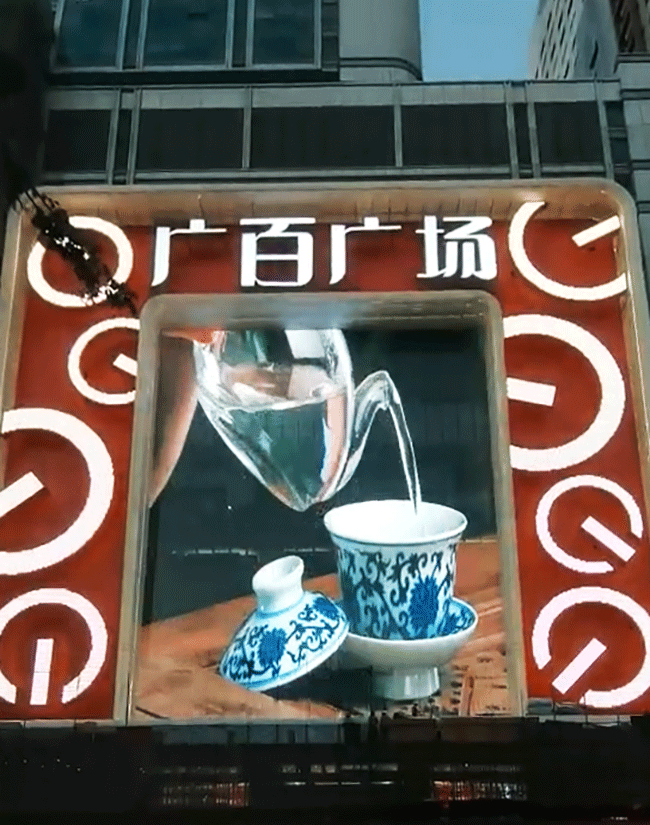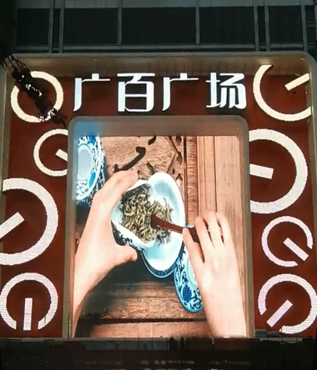 屏體未點(diǎn)亮?xí)r通透晶瑩,與室內(nèi)燈光色調(diào)完美相融,光影斑駁,商場美陳清晰可見,散發(fā)出強(qiáng)烈的藝術(shù)魅力。點(diǎn)亮后的屏體能實(shí)現(xiàn)現(xiàn)場直播與互動(dòng),帶給觀眾耳目一新的清新體驗(yàn)與驚喜,吸引著顧客“走進(jìn)去”“停下來”。